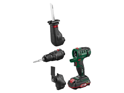 Descrizione Della serie PARKSIDE X 20 V Team: Batteria: 20 volt (2 Ah)Coppia: 35 Nm Caratteristiche 3 in 1 Trapano avvitatore, sega alternat...